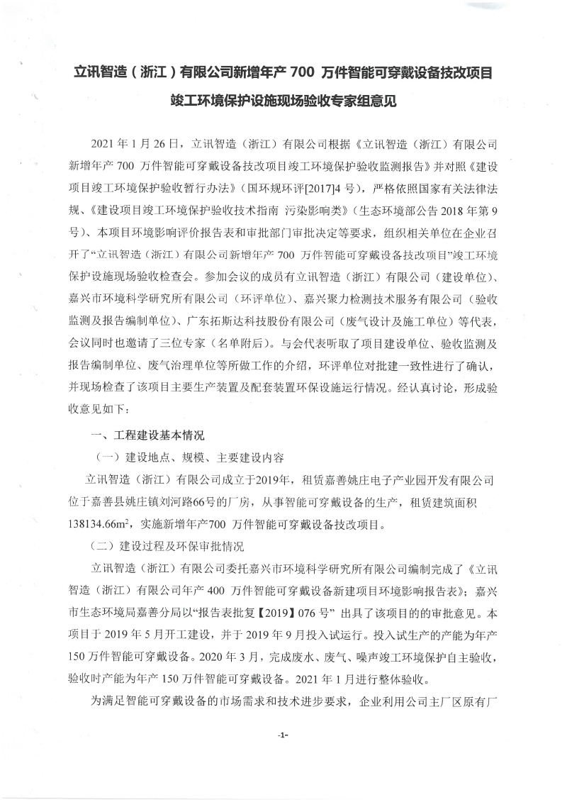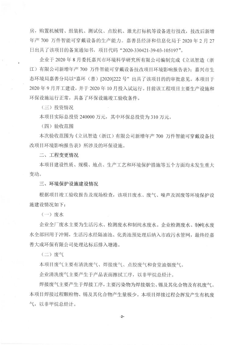 上篇: 立訊智造(浙江)有限公司年產(chǎn)400 萬件智能可穿戴設(shè)備新建項目竣工驗收意見