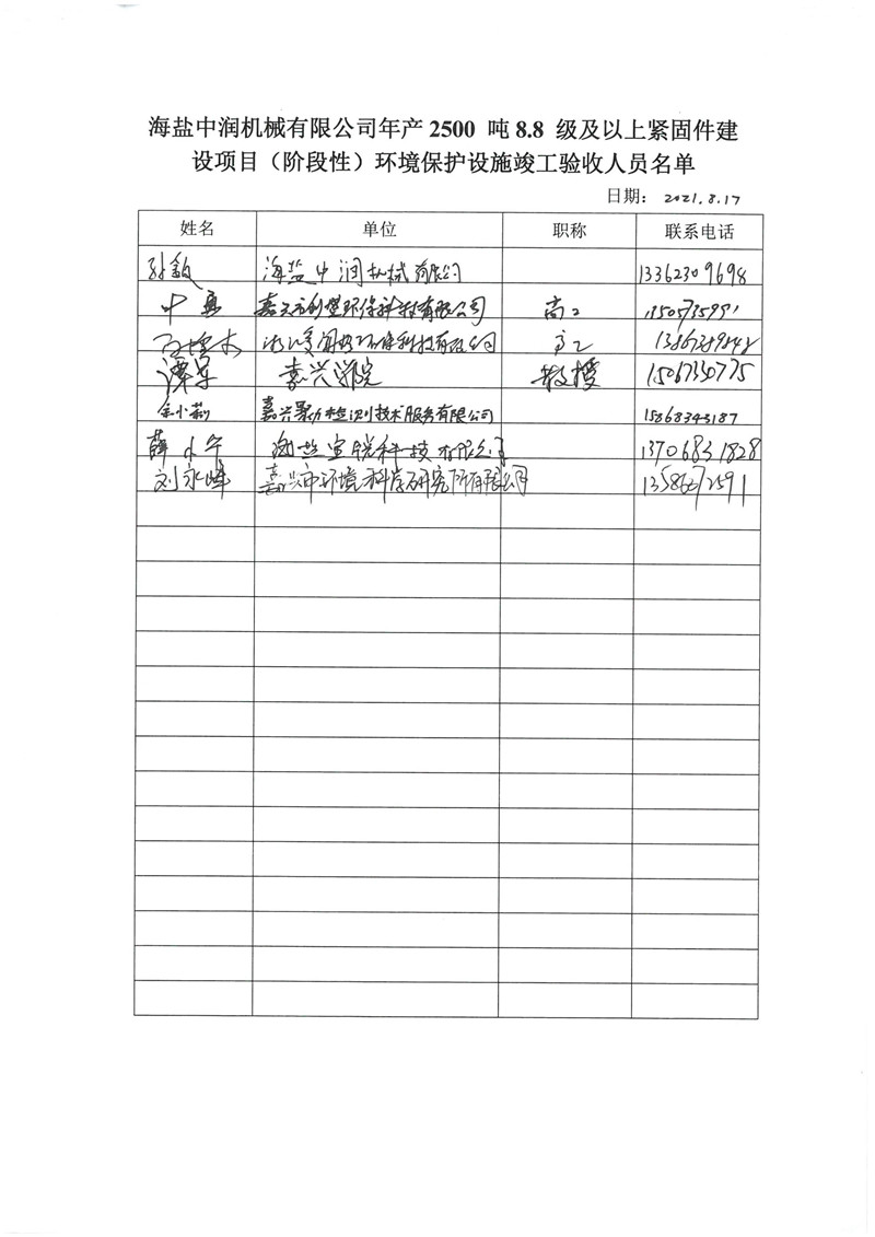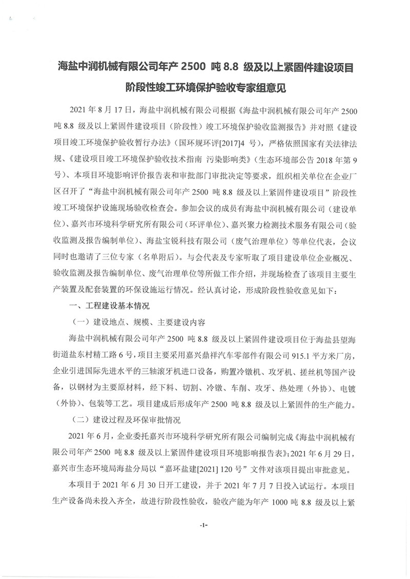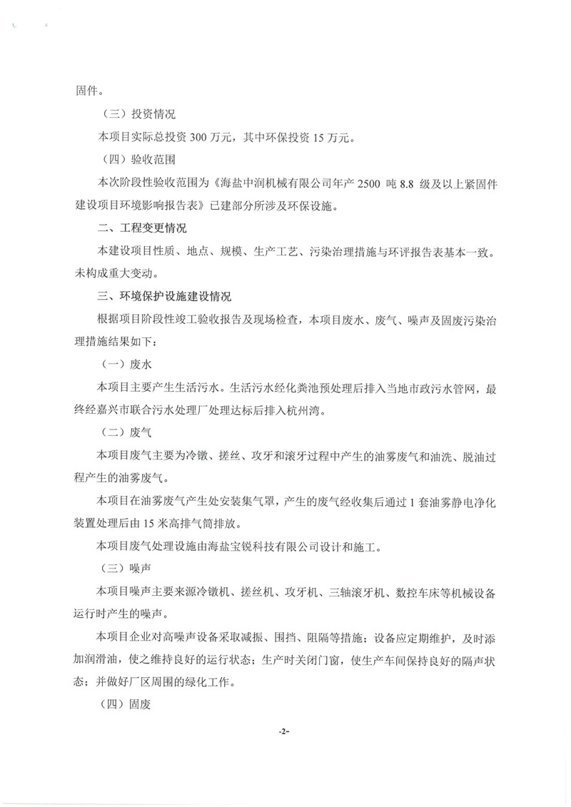 下篇: 海鹽銳特五金科技有限公司年產(chǎn)1500噸8.8級以上緊固件建設(shè)項目 階段性竣工環(huán)境保護(hù)驗收專家組意見