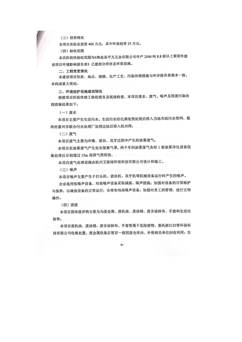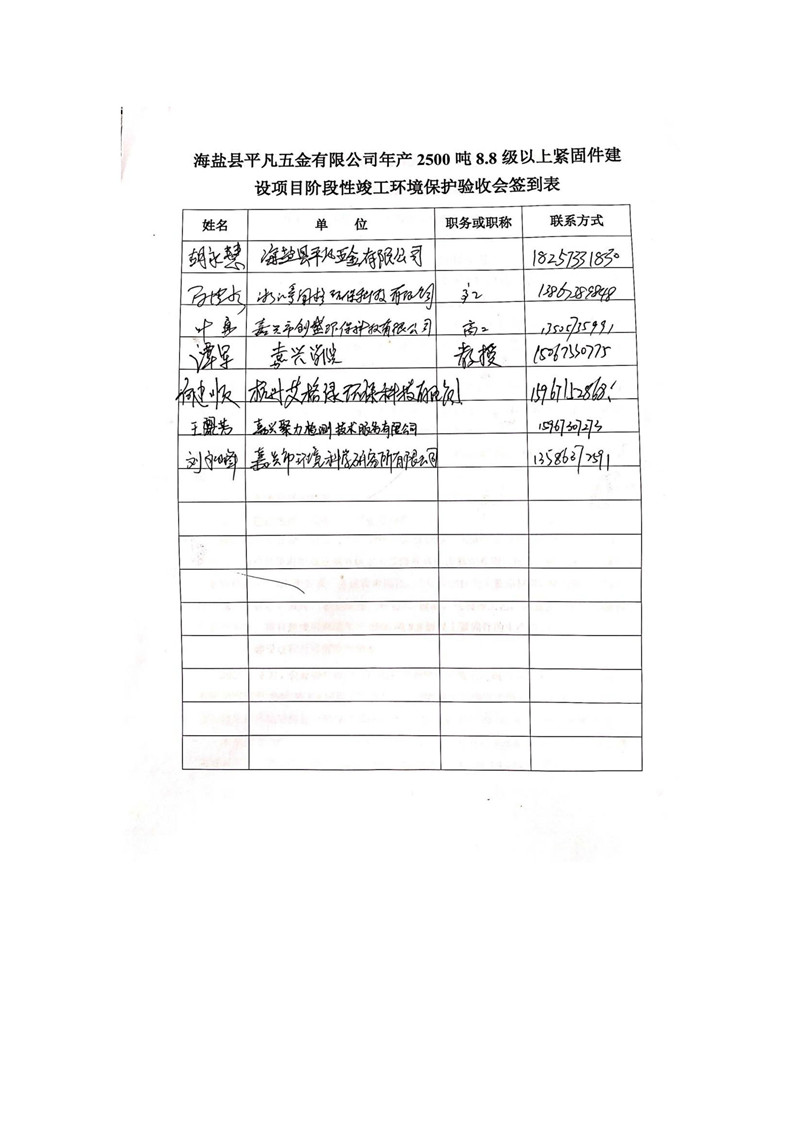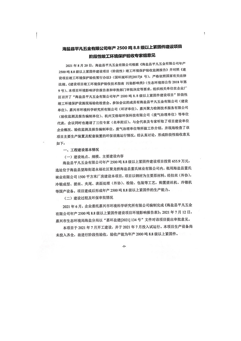 下篇: 海鹽永捷科技股份有限公司年產(chǎn)6000噸8.8級(jí)及以上緊固件建設(shè)項(xiàng)目階段性竣工環(huán)境保護(hù)驗(yàn)收專家組意見(jiàn)