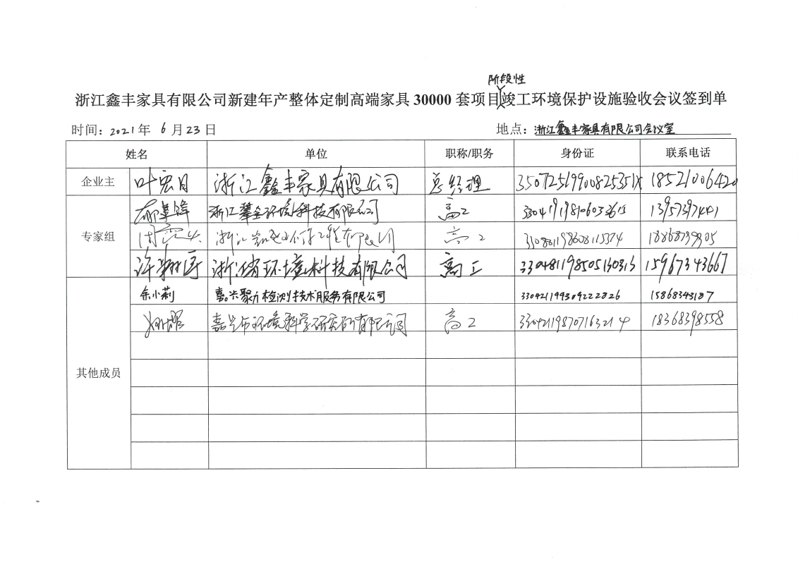附件下載:浙江鑫豐家具有限公司其他說明事項 浙江鑫豐家具有限公司驗收報告.pdf